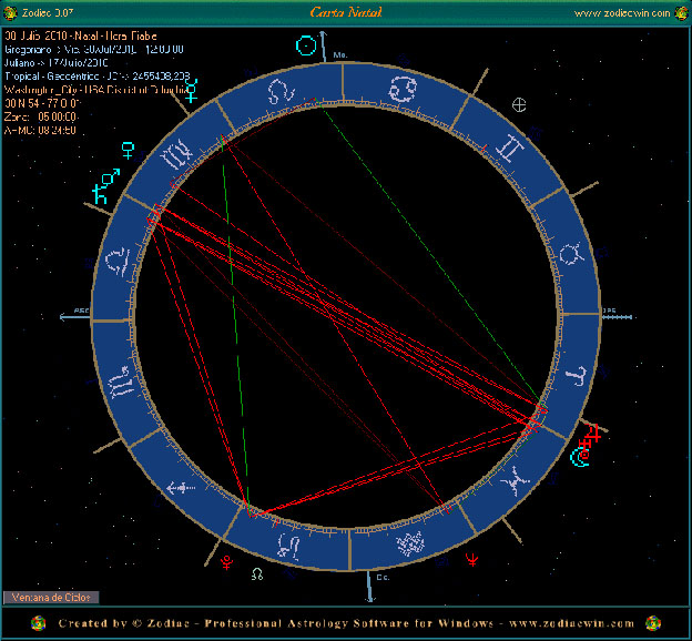 El ciclo Júpiter – Plutón también en fase de cuadratura, esta vez menguante, en la estructura en T que analizamos, se asocia con la pasión exacerbada por algo, la creencia ciega y apasionada y la politización de la masa.
